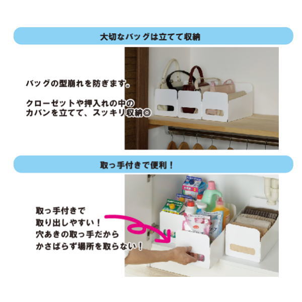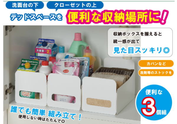 組み立て簡単収納ボックス 3個組 誰でも簡単に組み立てられる収納ボックスになります 洗面台の下やクローゼットの上などデッドスペース有効利用できる収納ボックスです 取って部分があるので、取り出しやすいです 鞄を立てて収納できます 使い方は自由自在! サイズ(約) W15cm×H18cm×D30cm 重量(約) 152g 材質 本体:ポリプロピレン樹脂 生産国 中国 <ご購入前に必ずお読みください。