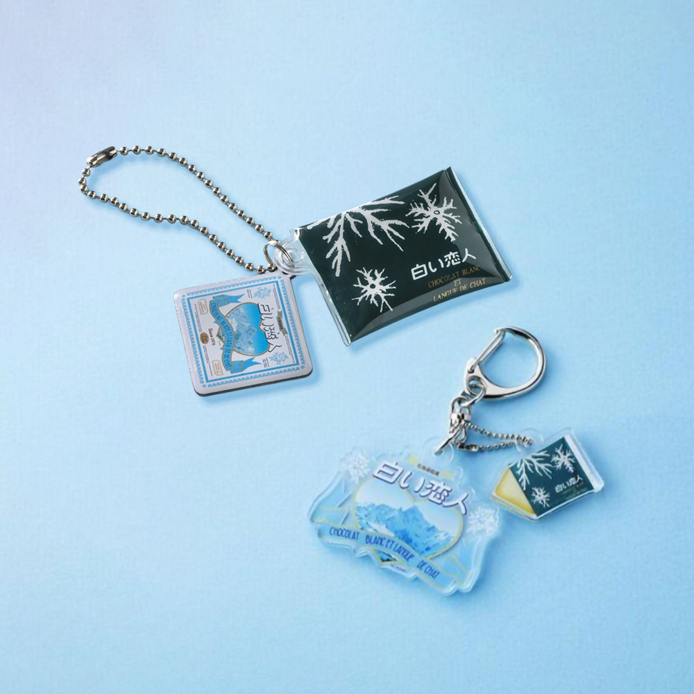 商品詳細白い恋人の「アクリルキーホルダー」と「オリジナルキーホルダー」のセット。