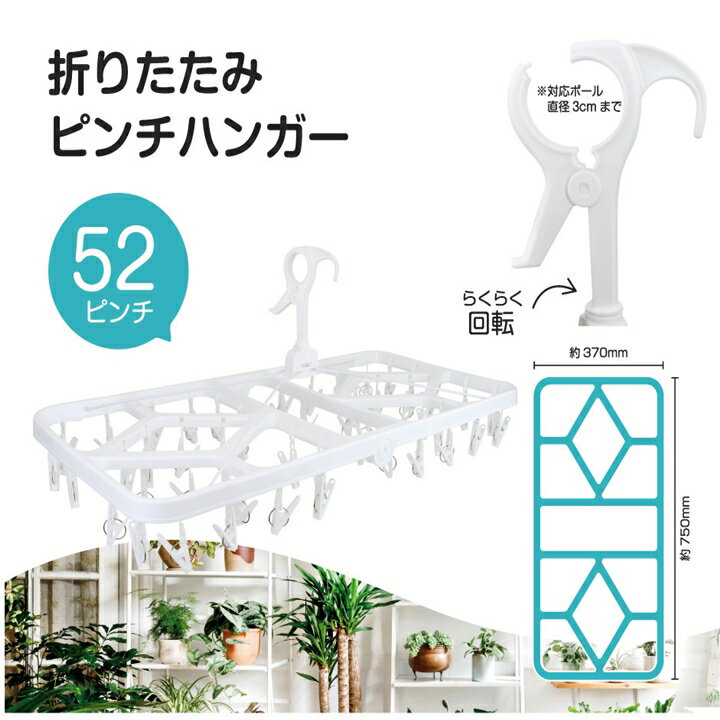 洗濯ばさみが52個ついた 折りたたんでコンパクトに収納できる ピンチハンガーです。